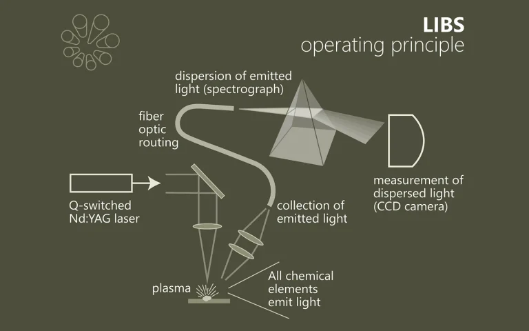 Die laserinduzierte Plasmaspektroskopie (LIBS) ist eine schnelle, zerstörungsarme Methode zur Bestimmung der Elementzusammensetzung von Materialien. Ein intensiver Laserpuls erzeugt auf der Proben ein Plasma, dessen charakteristische Emission analysiert wird. LIBS eignet sich für nahezu alle Materialarten – fest, flüssig oder gasförmig – und ist besonders wertvoll für Anwendungen, bei denen eine schnelle, ortsaufgelöste Analyse gefragt ist